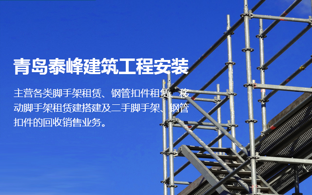 青島泰峰建筑工程安裝有限公司主營各類腳手架租賃、鋼管扣件租賃、移動腳手架租賃建搭建及二手腳手架、鋼管扣件的回收銷售業(yè)務(wù)。公司實(shí)力雄厚,擁有鋼管約3000噸、扣件70萬只、鋼笆7萬多片塔吊、人貨電梯多臺;總資產(chǎn)達(dá)到1000多萬元。是一家具有腳手架搭建、水電安裝專業(yè)承包施工資質(zhì)的企業(yè),并成為青島市五金協(xié)會的會員單位。且多次參與高層建筑、建筑裝修、玻璃幕墻、橋梁、隧道、地鐵、電廠維修施工、造船等行業(yè)的施工,并獲得施工單位的一致好評。 人無信不立,有信則強(qiáng)公司以“薄利多銷、服務(wù)取勝”為經(jīng)營宗旨...